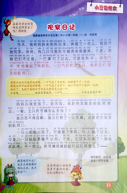 《天天爱学习》杂志作文1年级版2011年第4期选用本站作文