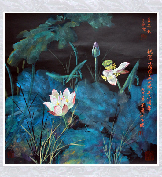 [本站珍藏的由木魔仙子赠送的立轴,是她妈妈的作品并精心装裱]