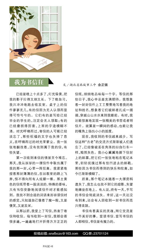 发表在少年先锋报初中生版《精读》2014年第6期。题目改为《我为书信狂》。