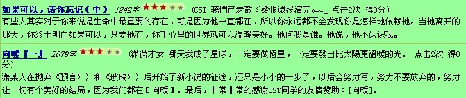 那天我和同学在说一些人自杀的事情,最后发现,好多好多的作家都自杀了,天,亲爱的素,你以后做了作家,千万别有那些文人怪癖。主要说说,你的文字真好,好的想把你毙了。以后要好好发展,全靠你了!
