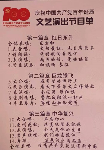 “真情颂党恩 永远跟党走” ——诗城奉节老干重庆活动组县老体协渝州分会举办庆祝建党百周年文艺演出活动 作者:袁祚萱 为庆祝中国共产党建党百周年,进一步丰富中国共产党党史学习教育载体和形式,丰富奉节老干部的精神文化生活,2021年6月16日下午1:30至4:28,由奉节老干部局主办,奉节老干住重庆活动组协办、奉节老体协渝州分会、夔渝艺术团承办的在重庆美心红酒广场西拉大饭店开展庆祝建党百周年《真情颂党恩永远跟党走》主题文艺演出活动成功圆满举办。该演出活动紧紧围绕“真情颂党恩 永远跟党走“,以信仰之声歌颂党的光辉历程,以实际行动感念党的丰功伟绩,向中国共产党建党百年倾情献礼。 本次文艺演出分为三个篇章:第一篇章《红日东升》,第二篇章《巨龙腾飞》,第三篇章《中华复兴》。首先,在全体观众暨演员全场立正奏唱《东方红》中拉开序幕,结尾又全场起立奏唱《没有共产党就没有新中国》。其中另有表演节目14个。表演节目内容丰富多彩:有大合唱、诗朗诵、表演唱、管乐演奏、民乐演奏、木兰拳舞、夔州花鼓,男生独唱,舞蹈……热情洋溢的舞蹈《万泉河水清又清》及其他节目,精彩的表演,优美的舞蹈,引得在场的近四百多名观众沉浸其中,不时传出阵阵掌声和喝彩,不少观众拿出手机拍照或录像,记录下一幕幕精彩瞬间。气势恢宏的诗词朗诵、铿锵有力的大合唱、风情浓郁的舞蹈、情感真挚的男生独唱,文艺汇演节目精彩纷呈。演出人员用歌声追忆党的峥嵘岁月、用诗词朗诵抒发对党的真挚情感,生动活泼的表演鼓舞人心,激发了大家坚定决心跟党走、努力奋斗新时代的热情。130余名演出人员精彩的文艺汇演赢得了老干部及其他群众近400余人的阵阵叫好声,喝彩声,活动现场热烈欢快,大家在享受视听盛宴的同时,也感受到了红色精神的洗礼。 此次文艺汇演以老干部喜闻乐见的形式,引导老同志真情颂党恩,永远跟党走,同时也进一步增强了使命感。本次演出活动由奉节住渝活动组领导之一的杨前大主持,县组织部副部长暨县老干局长任文军作了本次活动主题讲话。接着,老干活动组负责人杨运志同志带领在场共产党员重温了入党誓词,任文君局长代表奉节县委向22名老党员颁发了“光荣在党50周年纪念章”,然后,86岁高龄的县老干部代表住重庆活动组临时党支部书记黄开运、县89岁高龄的离休老干部代表张忠良作了积极发言。两位老干部其精彩发言感人肺腑……观众席上坐着原奉节县县长、县委书记何事忠、李绪忠、刘本荣等,特别是刘本荣书记至始至终积极参与乐器等伴奏、演奏…… 此次活动的开展,不仅丰富了部分奉节老干部的文化生活,提振了大家的爱党、爱国情怀,更展现了大家朝气蓬勃、积极向上、文明和谐的老有所为、老有所学的精神风貌,抒发了大家永远跟党走的坚定信念,传递奉节老干们满满的正能量。