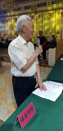 县老干部代表住重庆活动组临时党支部书记黄开运讲话 89岁高龄的离休老干部代表张忠良作了积极发言