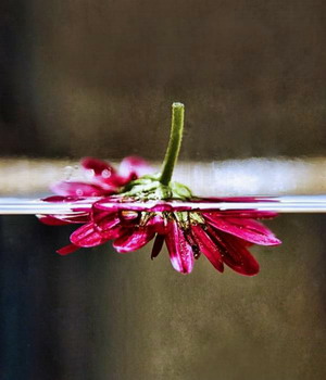 人群散开的时候,我看见了喷泉池里掉落的那朵我看着像似葵花的东西,垂落在水面。