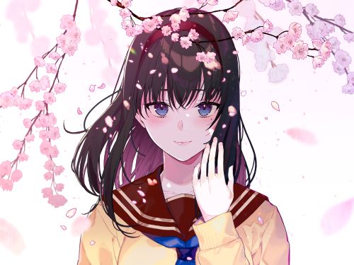 即使面前的女生用那动人的桃花眼真挚地凝视着我的双眸,同时强有力的风吹得樱花与她散下的发丝一同乱舞,造成一番视觉上的“樱花雨”,但我的内心却被这风吹得杂乱,在这阵花雨被冲走了一份感情。
